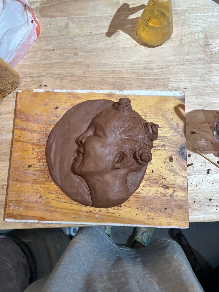 I am no longer behind in my classes lol, and I feel very good about the work I did in this class. I finished my two sculptures and made time to make a tiny and a little relief. oh and a tiny bust.