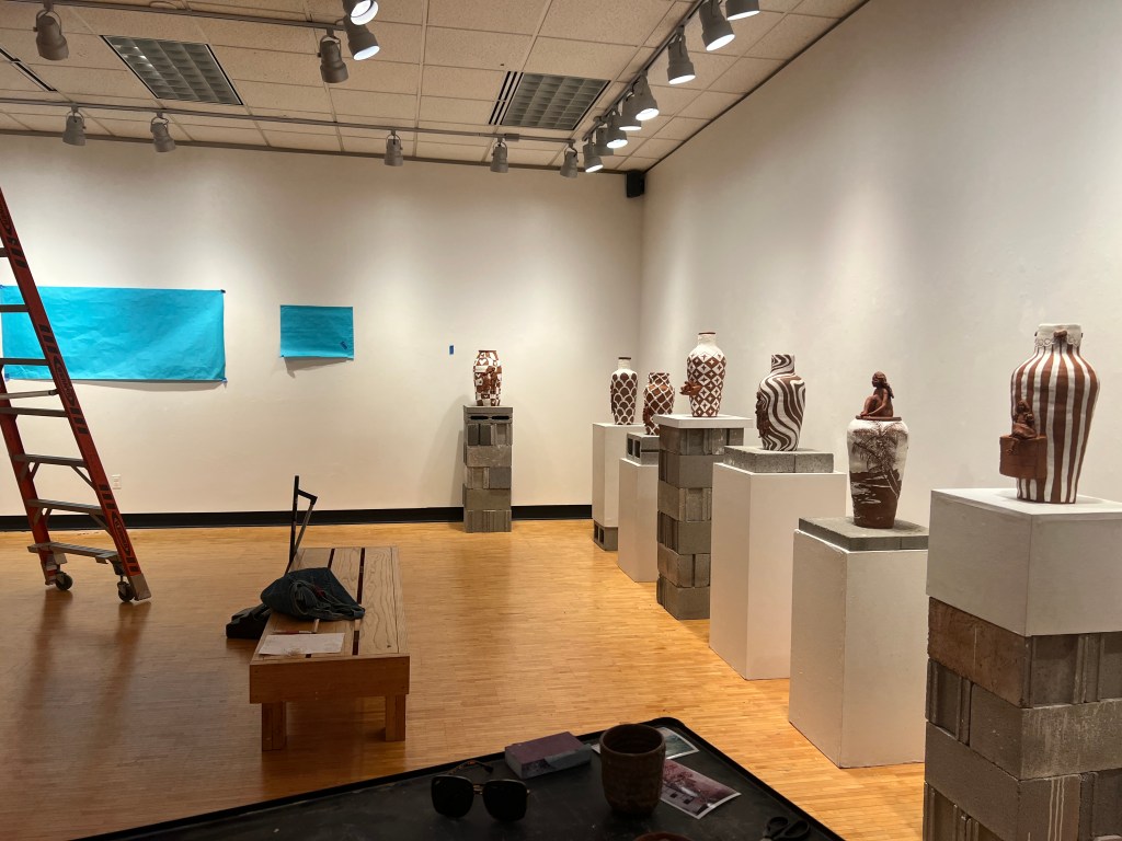 I am very excited about the show! It was so shocking to see all of my pieces and all my hard work from the past 3/4 months together in one room! (or wall, or rather, 21.5 feet of a wall lol) Agh, and when we were playing with the lights, I had many, many emotions, because what the heck, I did that!