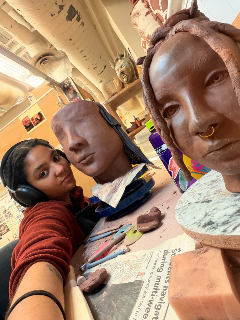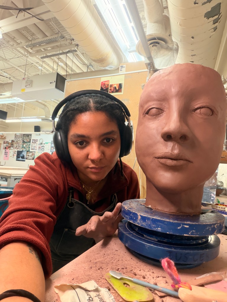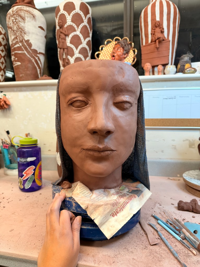 No big thoughts. No emotional spiral. Just me, the clay, the weird eyes, shaping the cheeks, and hitting the piece with the paddle a lot.